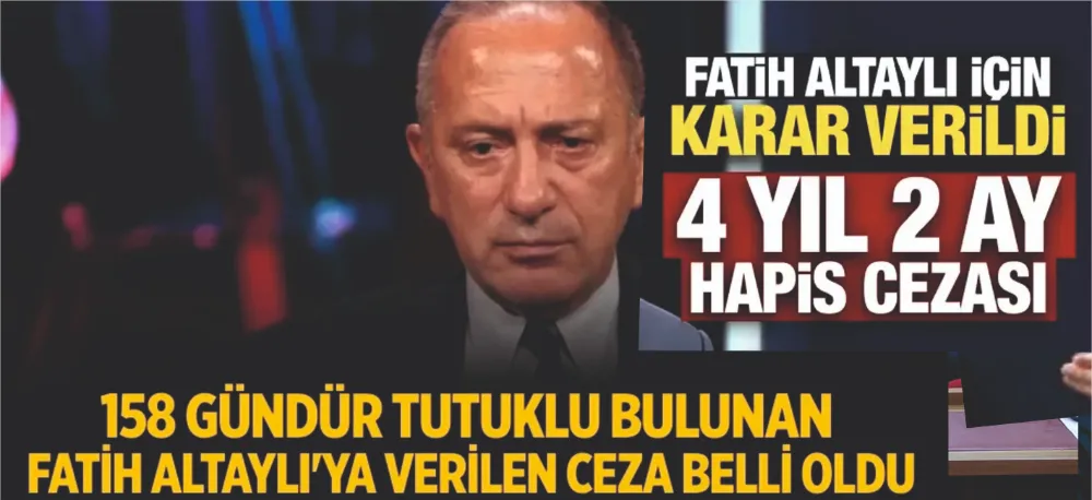 GAZETECİ FATİH ALTAYLI kararı çıktı. ‘Cumhurbaşkanına tehdit’ suçundan 4 yıl 2 ay hapis cezası verildi. Mahkeme, Altaylı'nın tutukluluk halinin devamına karar verdi.
