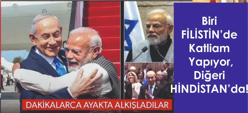 HİNDİSTAN Başbakanının , İSRAİL ziyareti gündemde. İSRAİL tarafından büyük bir karşılama gören HİNDİSTAN BAŞBAKANI, Netanhayu'ya sarılarak poz verdi. Biri FİLİSTİN'de katliam yaparken, Hindistan'ın da oradaki müslümanlara adeta kan kusturduğu bilinirken, iki devletin kirli ittifakı gözlerden kaçmadı.