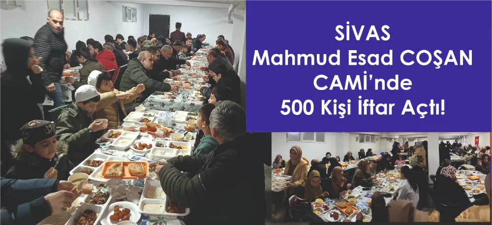 SİVAS'ın her noktasında Ramazan coşkusu ve bereketi yaşanıyor. SİVAS MAHMUD ESAD COŞAN CAMİ'de RAMAZANI en coşkulu kutlayan yerlerin başında geliyor.Cami yerleşkesinde 500 kişi iftar açarak, aynı zamanda teravihi de birlikte kıldılar.