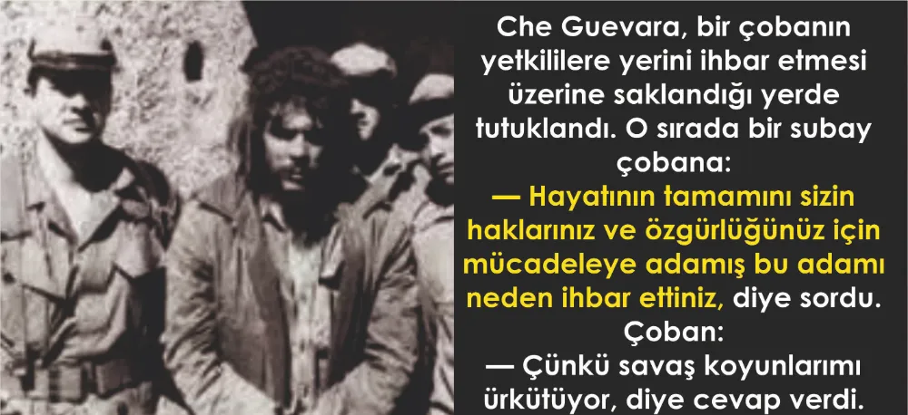 Ernesto Che Guevara, bir çobanın yetkililere yerini ihbar etmesi üzerine saklandığı yerde tutuklandı. O sırada bir subay çobana:
