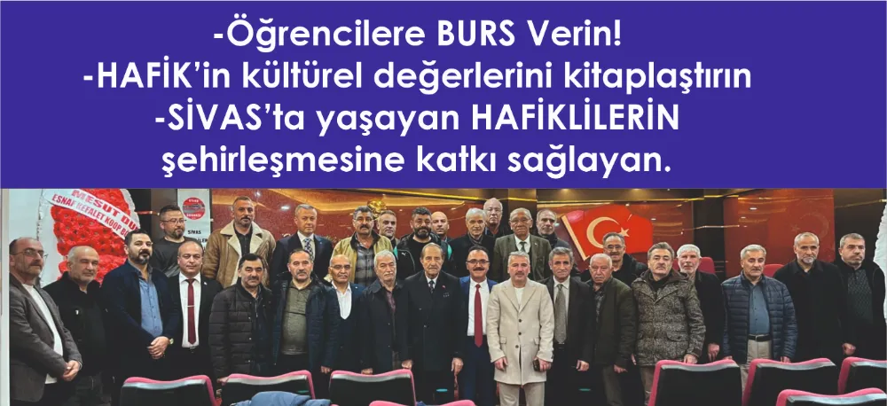 SİVAS'ta bulunan pek çok köy derneği “kuru kuruya yörecilik yapmakla” eleştiri alıyor. SİVAS HAFİKLİLİER DERNEĞİ de genel kurl yaptı. Bu derneğin dernekte toplanıp yörecilik yapmak yerine pek çok sosyal sorumluluk projesi hayata geçirmesi bekleniyor.