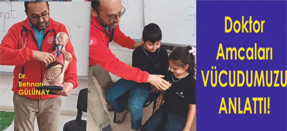 Öğrenciler İNSAN VUCUDU MAKETİ hediye eden Dr. GÜLÜNAY, aynı zamanda iç organları hakkında da detaylı bilgiler verdi.