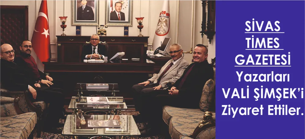 Bugün ise Vali Yılmaz ŞİMŞEK'i SİVAS TİMES GAZETESİ Yazarları ziyaret etti. Gazeteci Ç.Etem GÖLBAŞI, Eğitimci/Yazar Osman ÇELİK, Dr. Behnan GÜLÜNAY ve Dr. Hayrullah GÖLEN, bugün Vali Yılmaz ŞİMŞEK'e bir nezaket ziyaretinde bulundular.