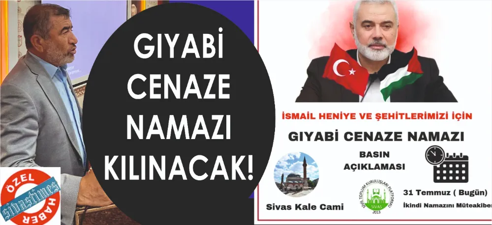 Bugün ise SİVAS'ta yerinde bir duyarlılık ile giyabi cenaze namazı kılınacak. EĞİTİM BİR İL TEMSİLCİSİ H.İbrahim TEMİZ, bütün STK'lar ile İKİNDİ NAMAZINA MÜTEAKİP Kale CAMİ'nde GIYABİ CENAZE NAMAZI kılınacağı ve bütün SİVAS Halkını KALE CAMİ'ne davet ettiğini ilan etti.