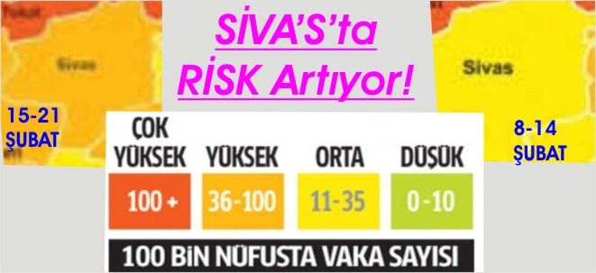 Mart itibariyle normalleşme beklenirken, SİVAS’ta tedbirlere yeterince uyulmamasından dolayı salgının arttığı ve haritanın “ORTA” dan “YÜKSEK” e evrildiği belirtiliyor.